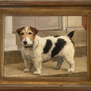 In 1899, Hollams was elected an associate of the Society of Women Artists and by 1902 her qualities had been quickly recognized and she made a full member. She exhibited extensively including at the Royal Academy, the Society of Women Artists, and at the Walker Art Gallery in Liverpool. In June 1929 she had “A Loan Exhibition of Oil Paintings of Horse and Dogs”, of 66 paintings, at the New Bond Street Walker’s Galleries. It was a remarkable tribute, with 54 paintings being kindly lent by many titled and wealthy owners of show champions, pets and famous kennels. In 1937, the New Bond Street dealers Arthur Ackermann & Son paid tribute to Hollams again with 38 paintings “A Loan Exhibition of Oil Paintings of Horses and Dogs”.