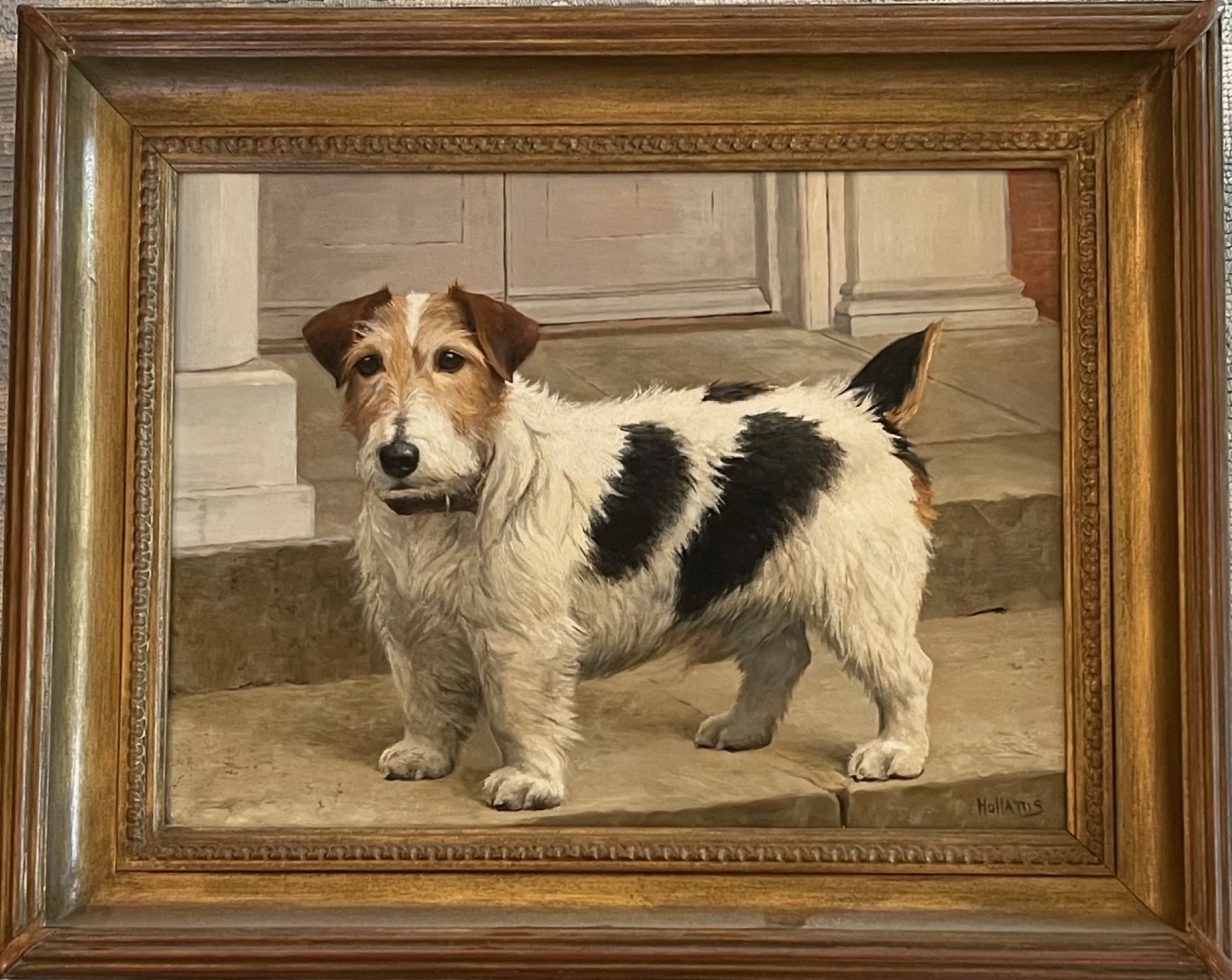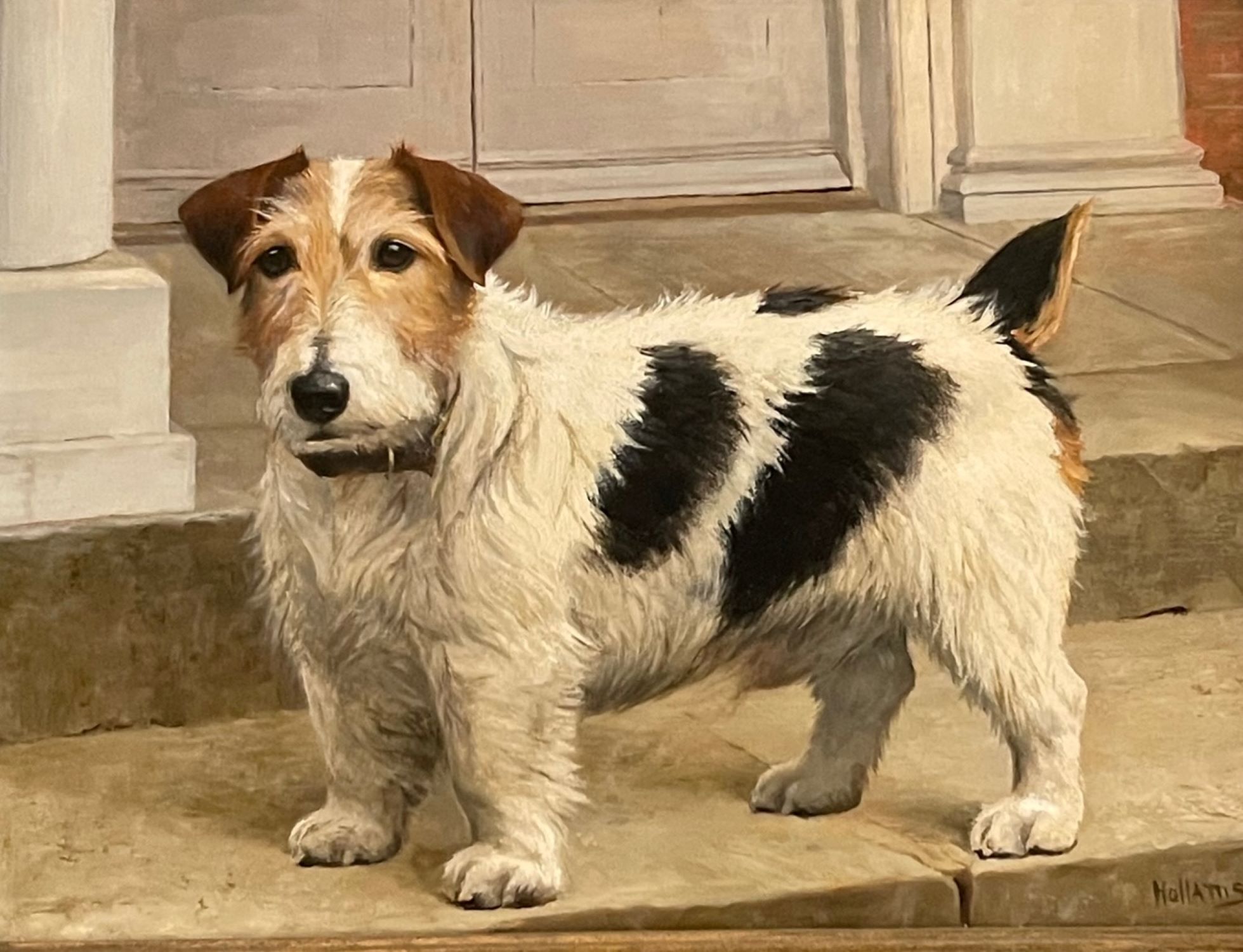 One of Hollams’ trademarks was to paint the dog or horse on board, sometimes varnished, with the grain of the wood showing through, and invariably with no background and the animal’s name inscribed on the board.