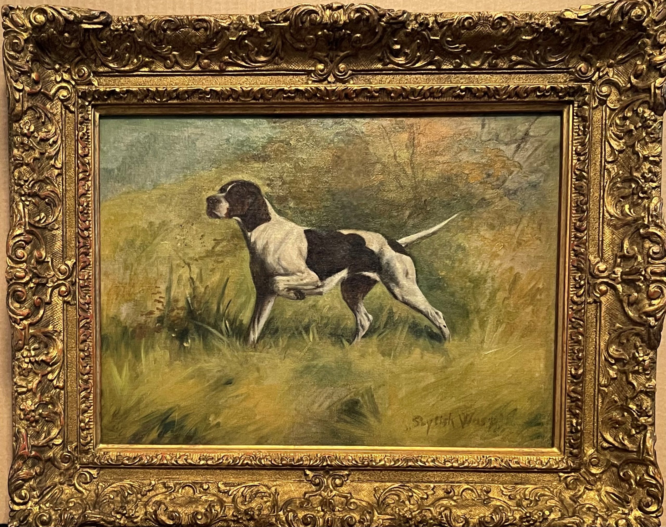 Muss-Arnolt was also active in New York’s art community, exhibiting his paintings at the National Academy of Design in 1880, 1881, 1886, 1887, and 1894.  Although relatively little is known about his early life and artistic training, his paintings remain enduring testaments to his skill and affection for dogs. While he portrayed many breeds, Muss-Arnolt is best known, like his contemporaries Edmund Henry Osthaus and Percival Rosseau for his dynamic depictions of pointers and setters. His work is distinguished by a darker, moodier palette and a keen ability to capture the action, tension, and vitality of the field, qualities that continue to define his legacy among American sporting artists.